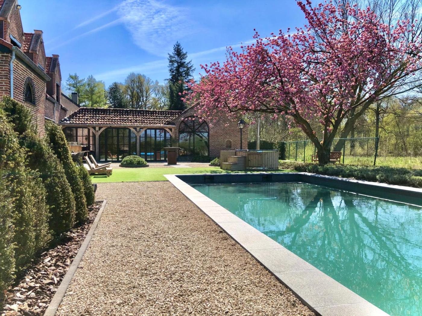 Featuring a garden, private pool and garden views, t Averhuys is located in Itegem. Boasting a shared kitchen, this property also provides guests with an outdoor fireplace. Providing free WiFi throughout the property, the non-smoking villa has a hot tub.